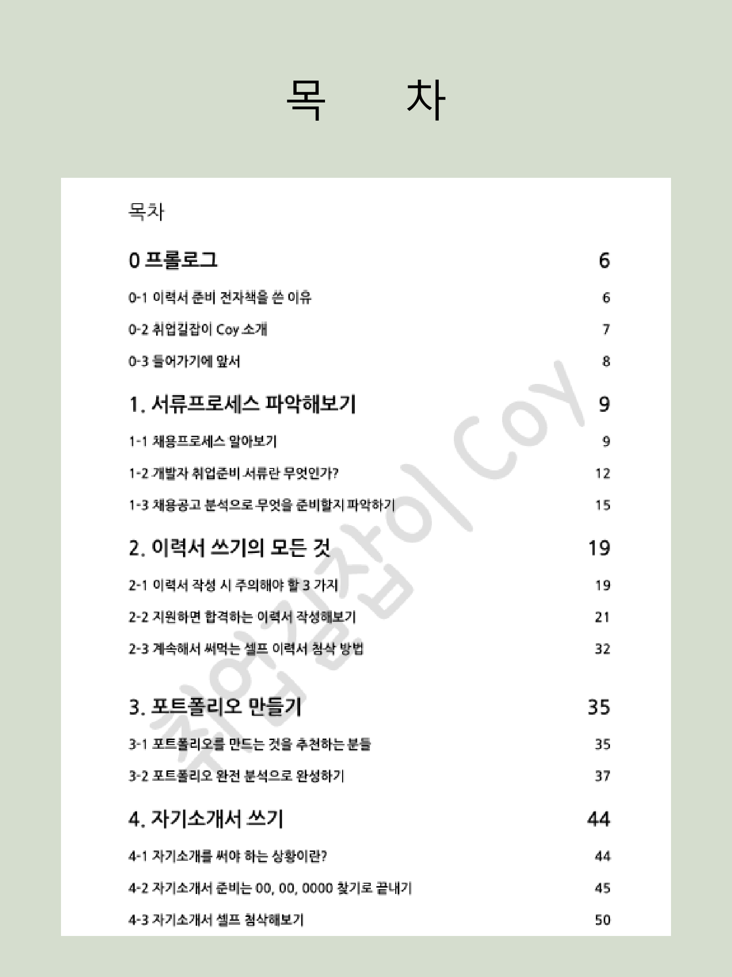 취업길잡이 Coy 전문가의 전자책 서비스를 만나보세요. 서비스 설명[이력서 전자책 출간 할인 이벤트] 전자책 가격 40000- > 25000한정 ...