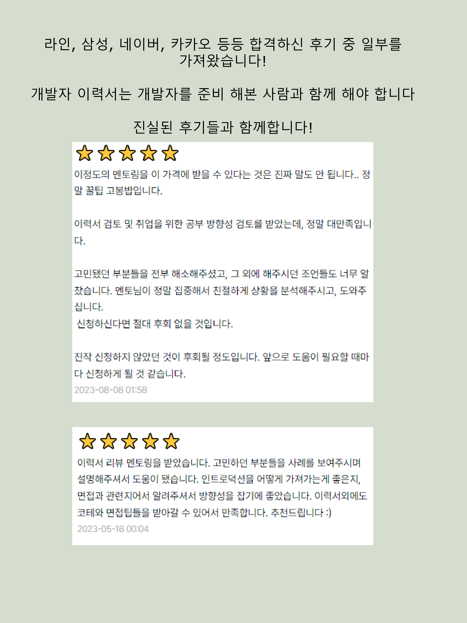 네카라쿠배 개발자가 드리는 이력서,자소서,포폴의 모든것 - 크몽