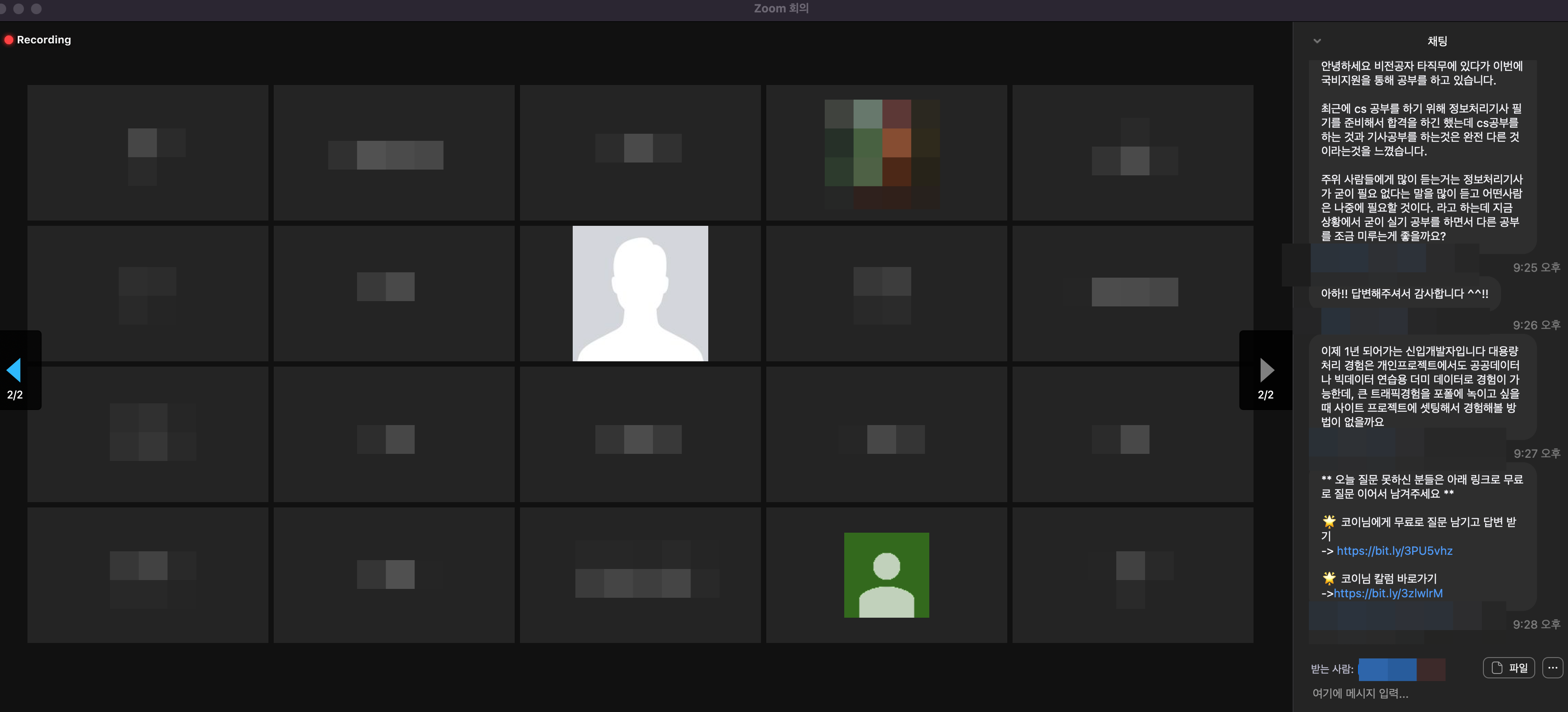 8/2 저녁 8시에 한시간 반 정도 인잇 주관하에 줌으로