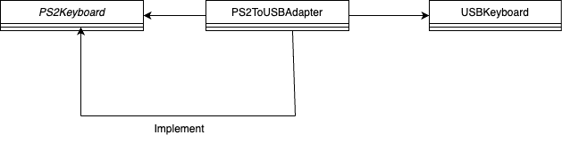 PS/2 키보드를 USB 키보드로 변환하는 어댑터인 PS2ToUSBAdapter 클래스를 작성하여 PS/2 키보드와 USB 키보드의 인터페이스를 연결합니다.